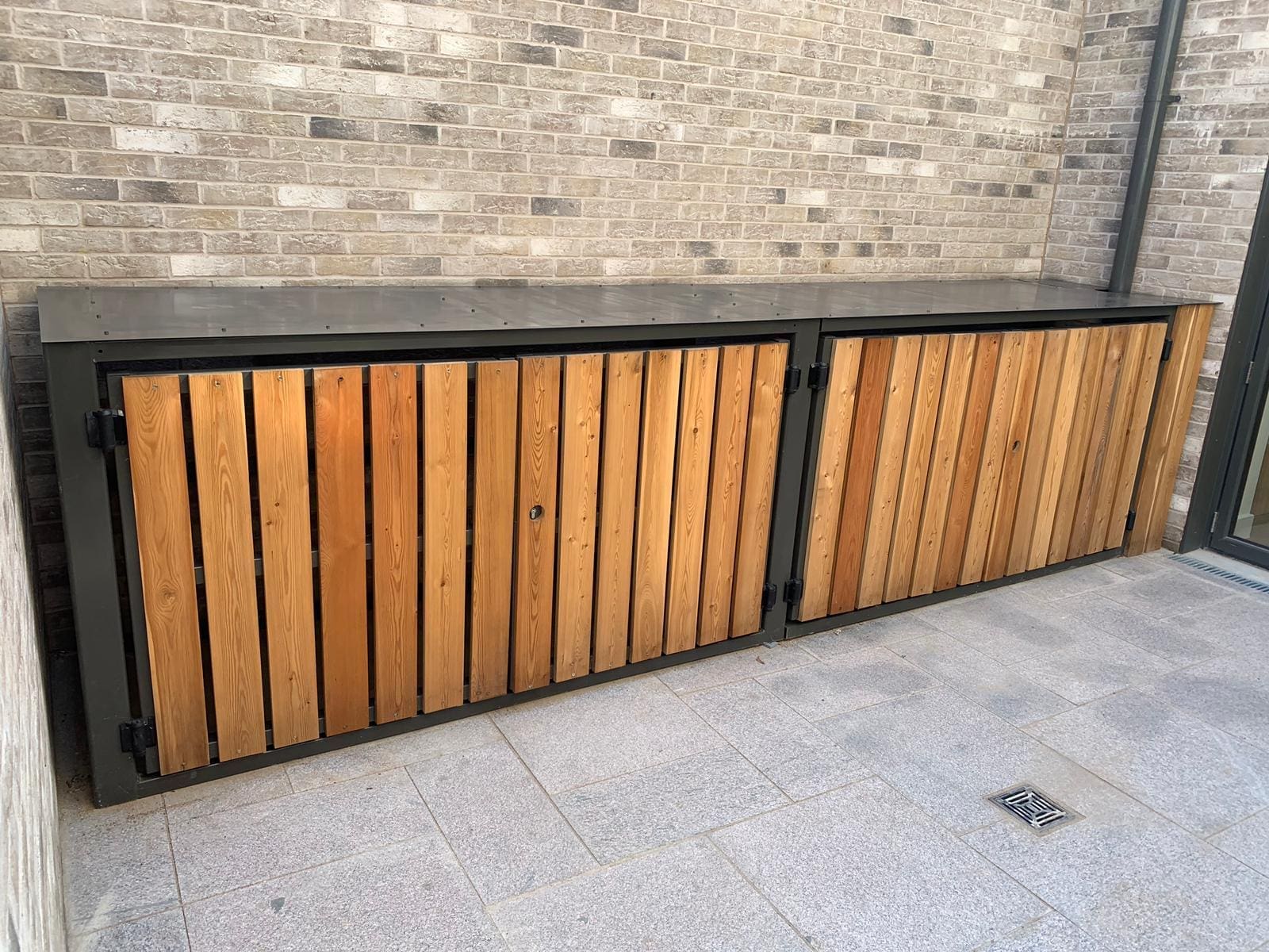 Each store was designed to store two household wheelie bins and two bikes, with each benefitting from their own secure compartment and divider between sections. Access to the bin section was made possible both via the frontal gates, or via the gas-strut assisted hinged roof section for ease of day-to-day use.