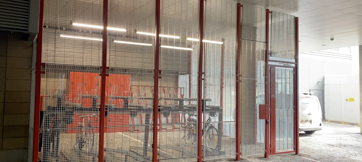 Grated Security Fencing and 80mm x 80mm SHS uprights were selected for the bike store’s perimeter, accompanied by a single swing gate with fob access control and PIR lighting to provide a comprehensive security package.